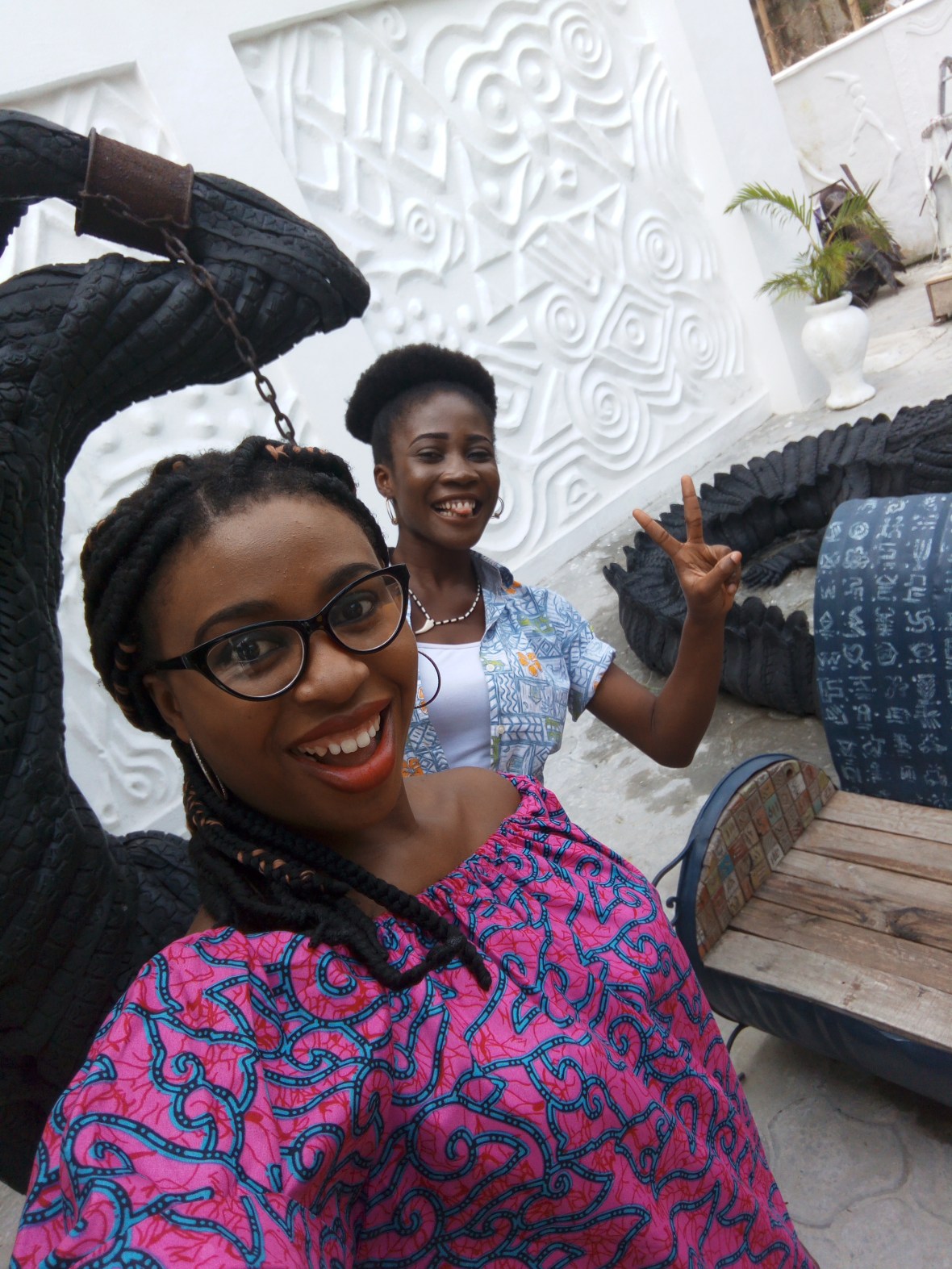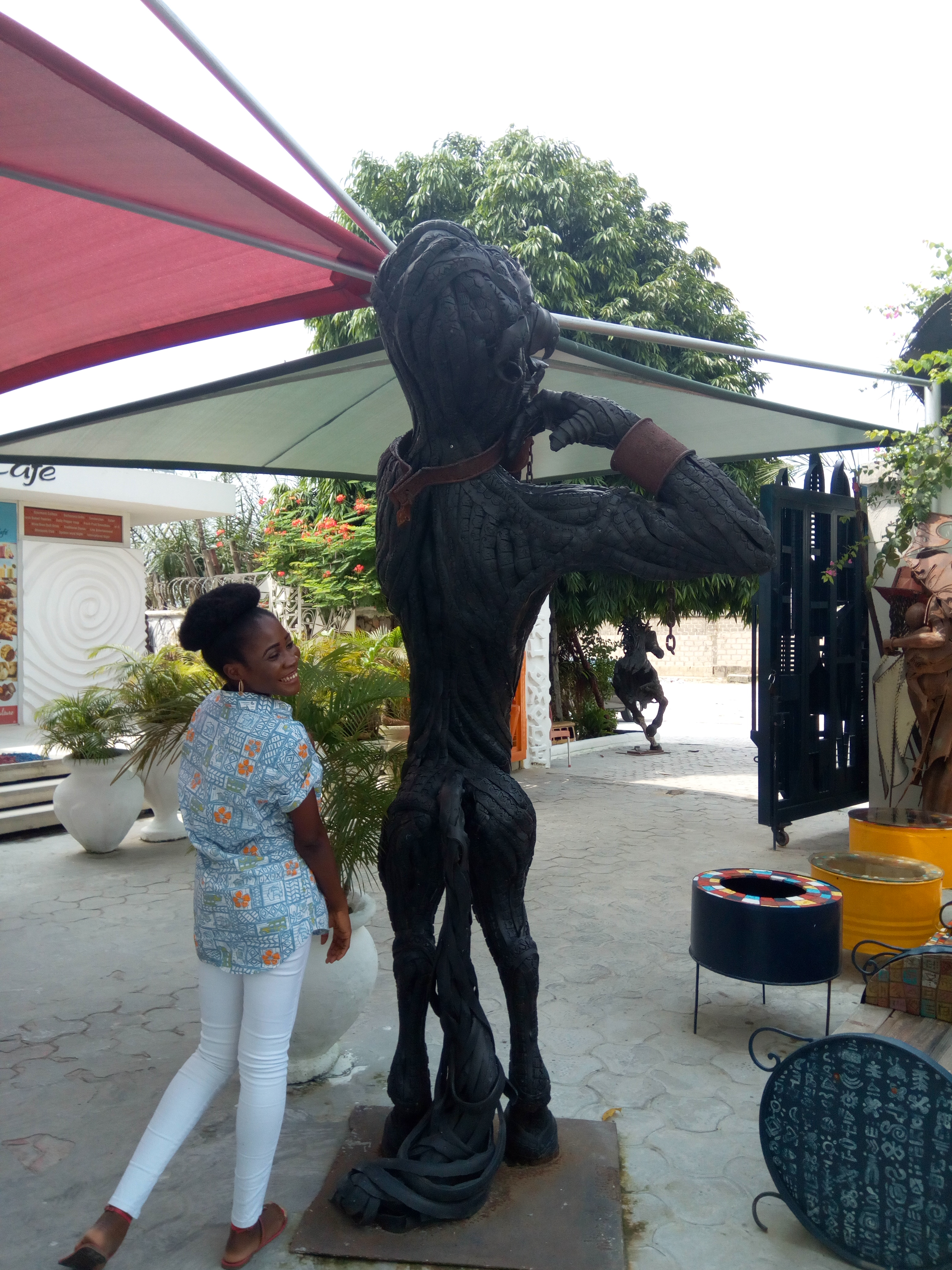 I went with my sister, Chinelo. And while we were looking around, we saw the great Nike, an elderly but really agile woman. She was busy moving art works and we didn’t want to be “rude”…so we didn’t ask for a selfie. I bite myself anytime I think about it. But she got to talk to us in the moving process. We were in a room filled with wooden carved works. And she told us that particular room was like a palace.